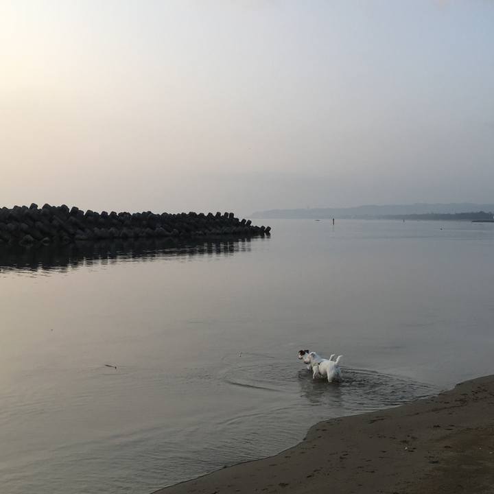 風が涼しいの🐶 #ジャックラッセルテリア #うみ散歩 #どぼん