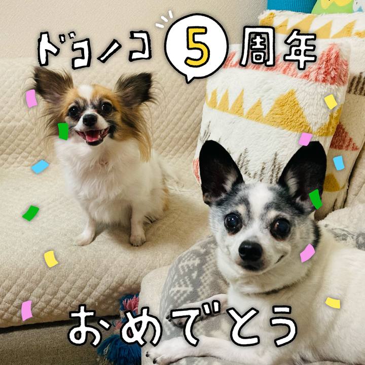 #ドコノコ5周年 コモンとつくねもお祝いします🥂🐾 ドコノコもみんな可愛い💛