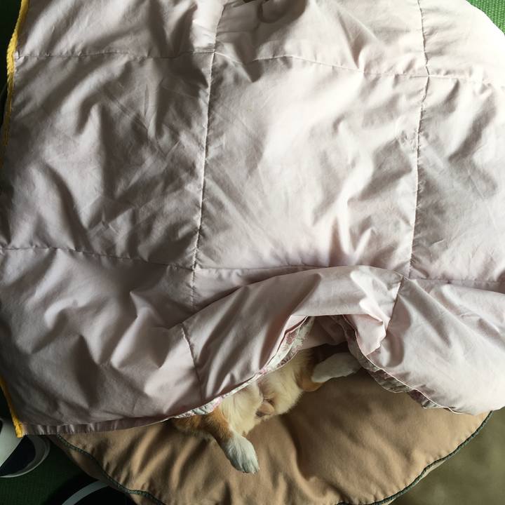 あ、ヘソ天になった😊 ちょっと安心💕 #コーギー #へそ天