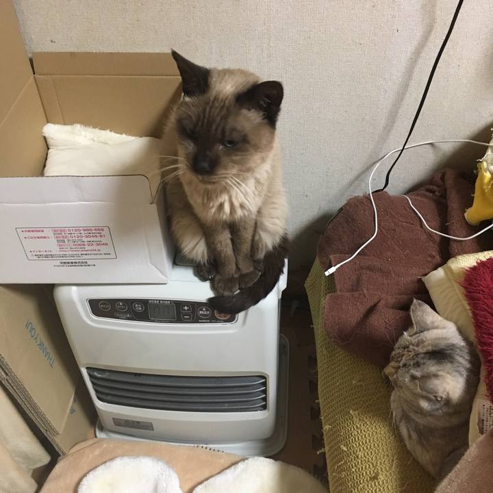 ストーブの上と布団にインの美学 #ねこ句 #何故そこに