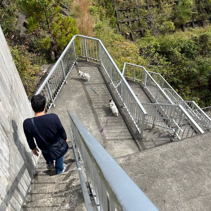 魔が刺してダムの際の急勾配の階段にトライ 足がガクガクです_:(´ཀ`」 ∠):