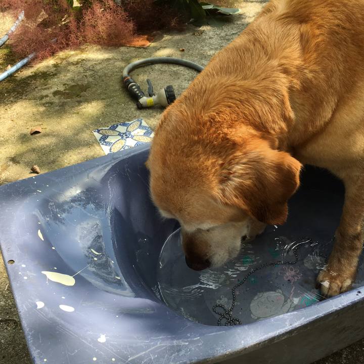 午後から少し水あそび。お婆ちゃんになっても水好き♪#老犬#水あそび#水浴び