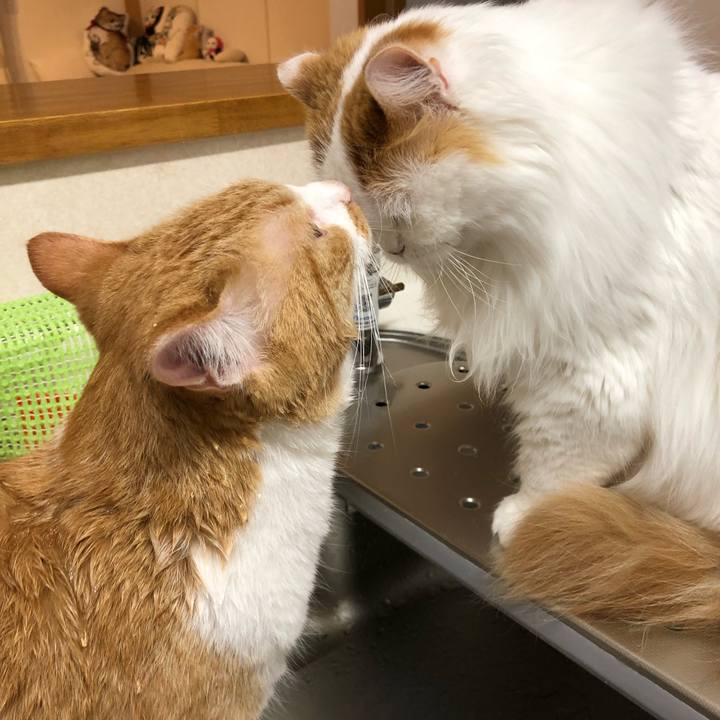 ちゅー しちゃったじぇ♡ #シンク隊 #ハチワレ #茶白 #子猿