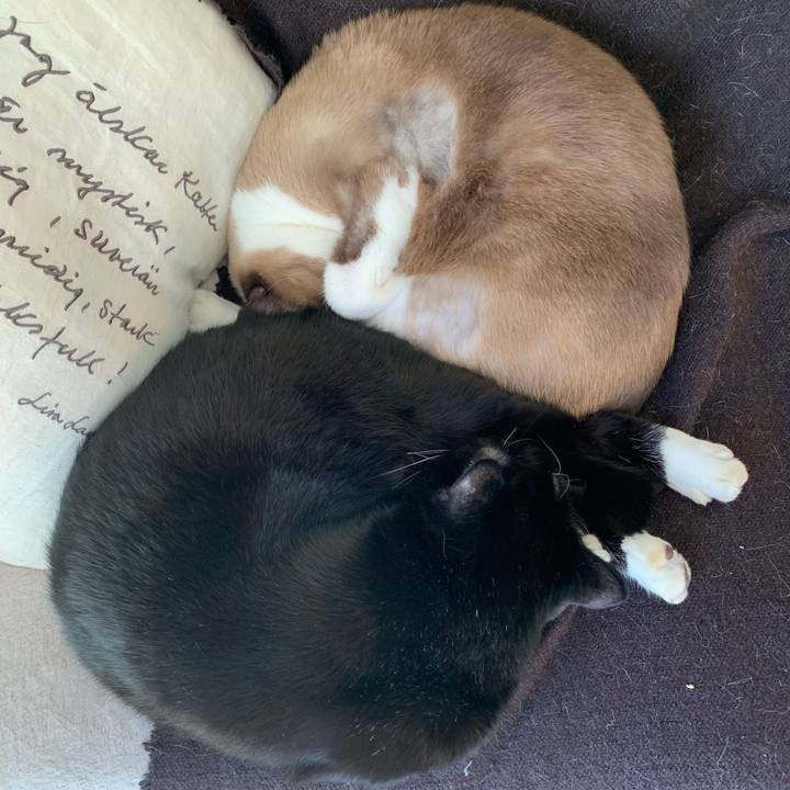 久しぶりの猫団子💓💓🍡 キュッとしているからかな?クミンの方が小さく見える😂