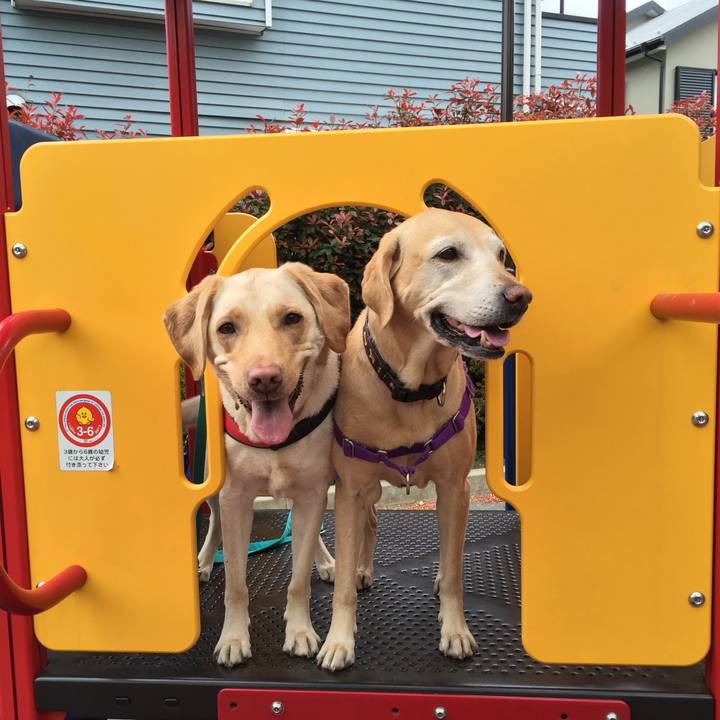 すべり台は高いから見晴らしよかったよ〜🎵#ラブラドール #ラブラドール多頭飼い