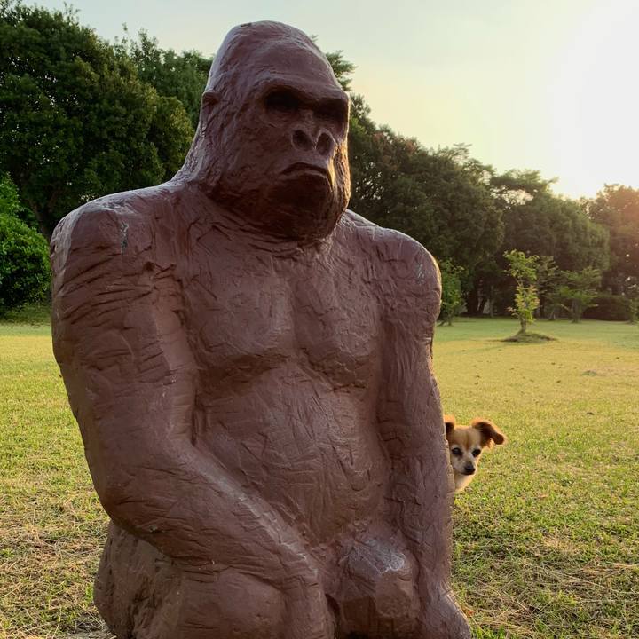 おはようさん🦍 #チワックス#ミックス犬#あさんぽ#ひょっこりはん#親分と一緒