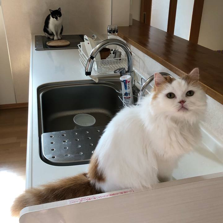 うはよう 女子たちのフォーメーション #ハチワレ #茶白 #シンク隊 #白黒