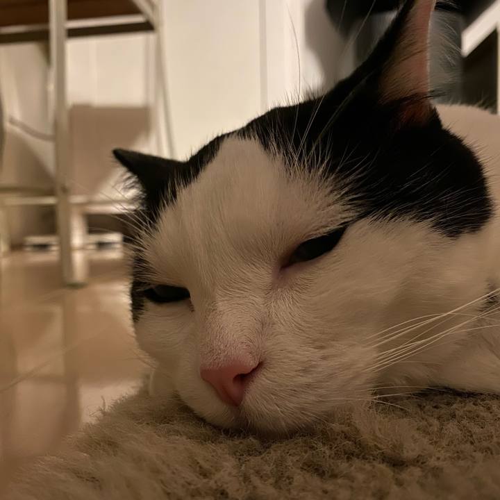 もうだめだ…まぶたが重い… #眠い #つちのこ寝 #ハチワレ #白黒