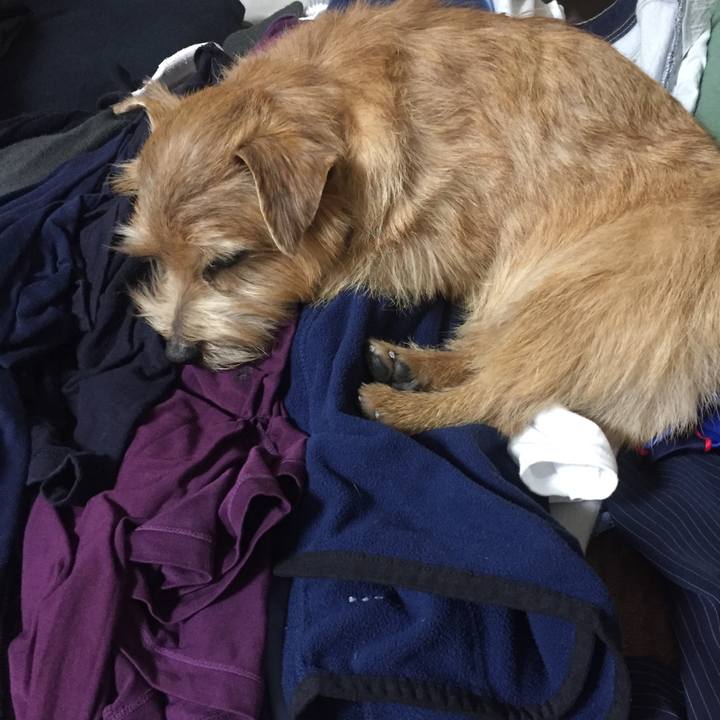 乾燥機から出したホカホカの洗濯物の上でお休み^_^;