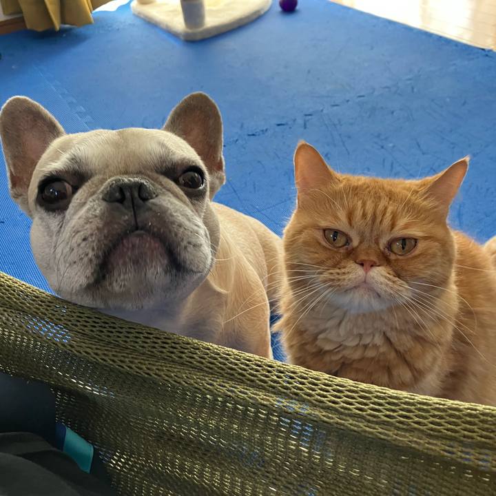 飼主また寝てるね。ジーッ #監視業務#おされさん倶楽部#フレブル#エキゾ