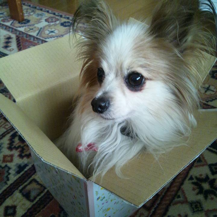 箱があったらゴキゲンp(^^)q #箱入り #迷子犬 #パピヨン