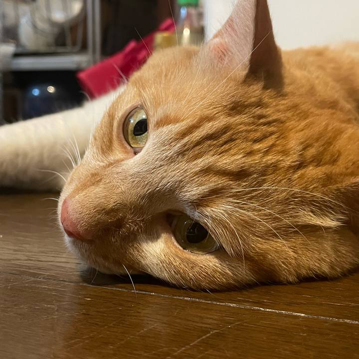 ボクは床が好きー #オンザフロア #茶トラ白 #土アップ祭り #エアコン #暑い