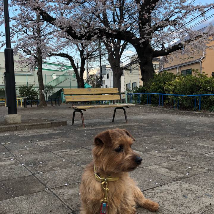 お花見散歩 #ノーフォークテリア #お花見 #短足 #チンピラ