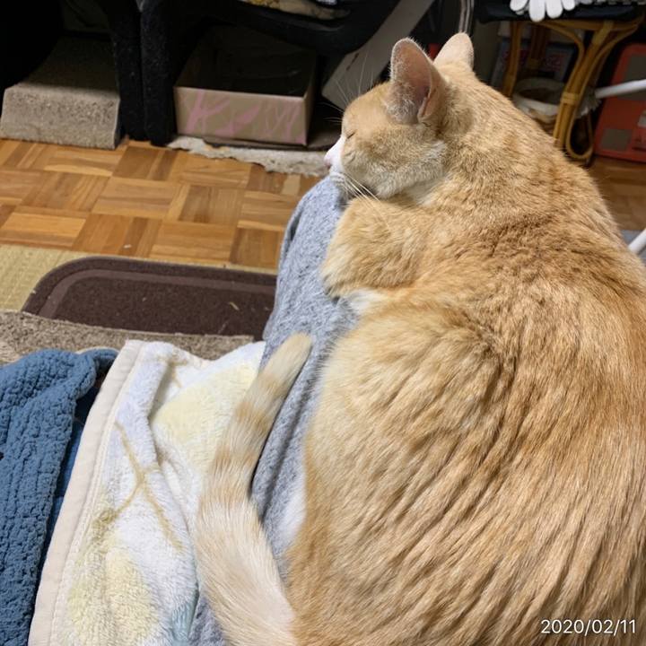 満足です おひざにのってあげましょう #ねこ句 #それはどうも