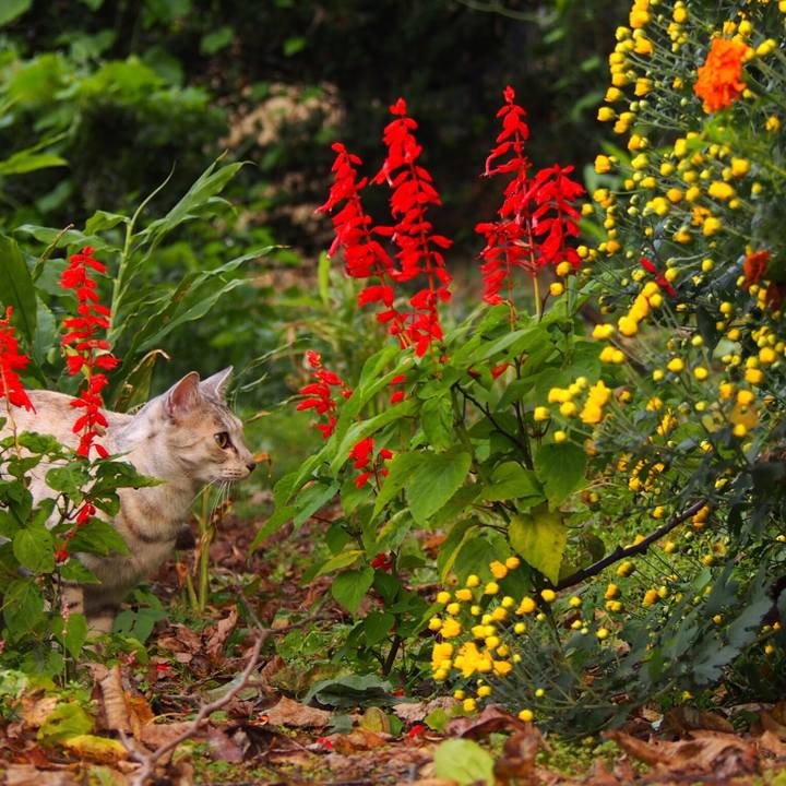 サルビアと菊 #サバトラ #鯖組 #秋