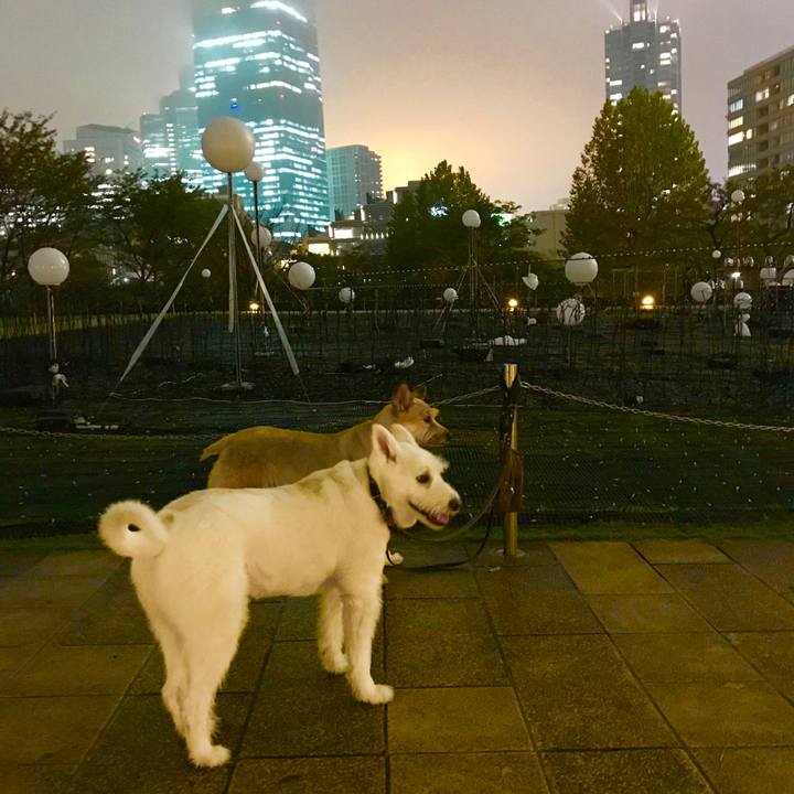 後ろは🎄イルミネーション会場です 今年のイルミネーション装置は なんだか凄い😳