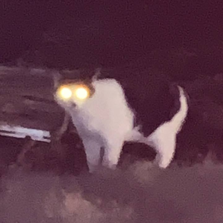 ハチワレの兄弟で尻尾がシマシマの子…この子も📸で宇宙人👽になってしまいましたぁ😆
