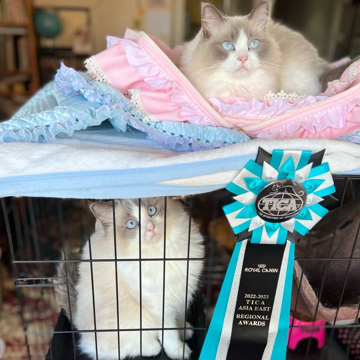 パパのご褒美のリボンが届きました🎀✨✨1年間の成果です💙次はみぃちゃんへ…💚✨✨