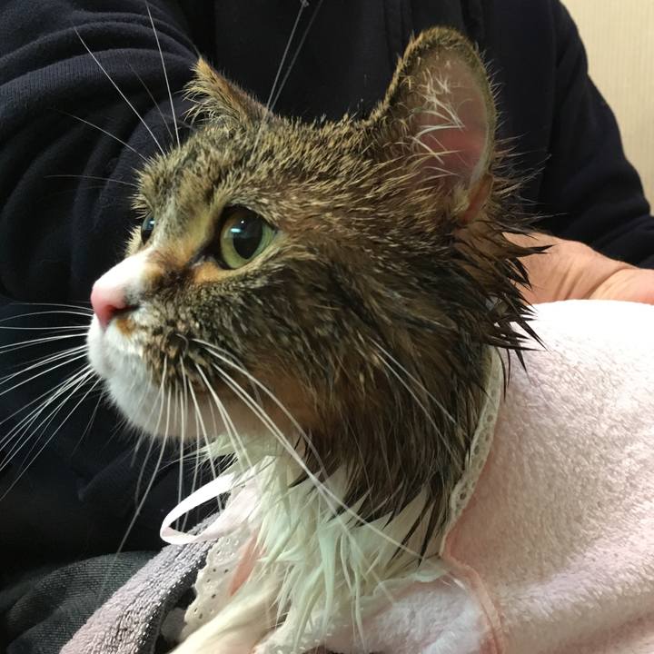 一年ぶりのシャンプーでまたまた放心状態の朝くん