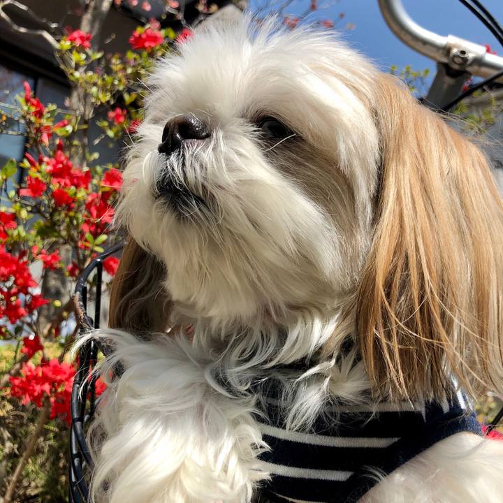 #シーズー#モジャ部 #stayhome #庭 #青空#つつじ#自転車#花便り