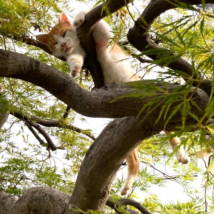 友人宅の庭木でお昼寝してたコ。よく来るんだって。