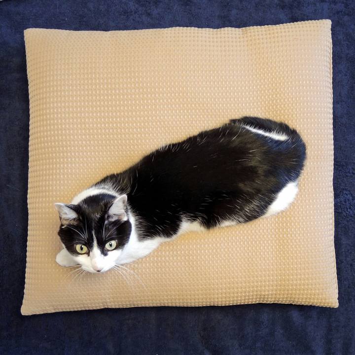 座布団カバー替えようと置いといたら乗ってるし🐱 #じゃまかわ #ザブトンスキー