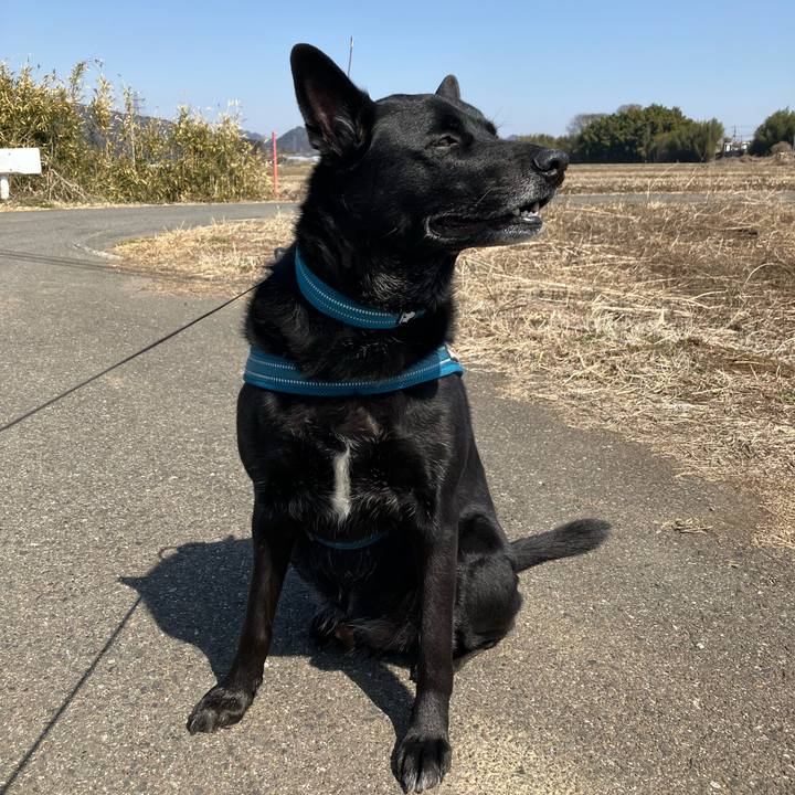 散歩10分で動かなくなったので、もう終わり?って聞いた時の顔 #黒犬