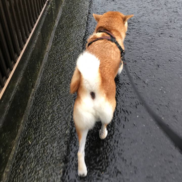 おはようございます☔️ ガォガォの凛太郎をなだめ😣土砂降り散歩🐾 #柴犬