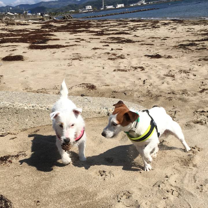 それ貸〜〜して🐶 #話せばわかるイヌ #犬同士で遊ぶ で#うみ散歩