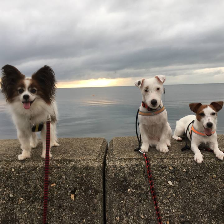 おはよう 雨 上がったよ #犬の日 #jrt #パピヨン #あさんぽ