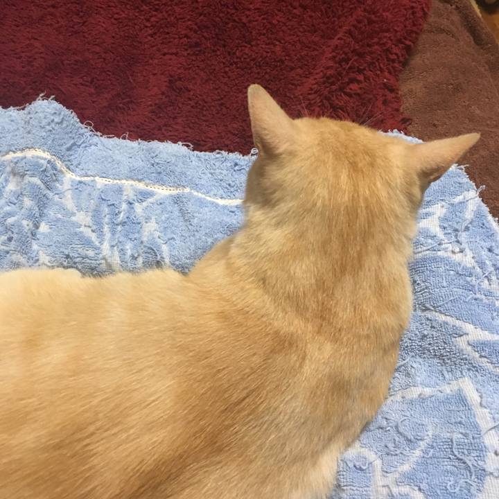 男はときに背中で語るです #ねこ句 #おはようございます (というか後頭部?)
