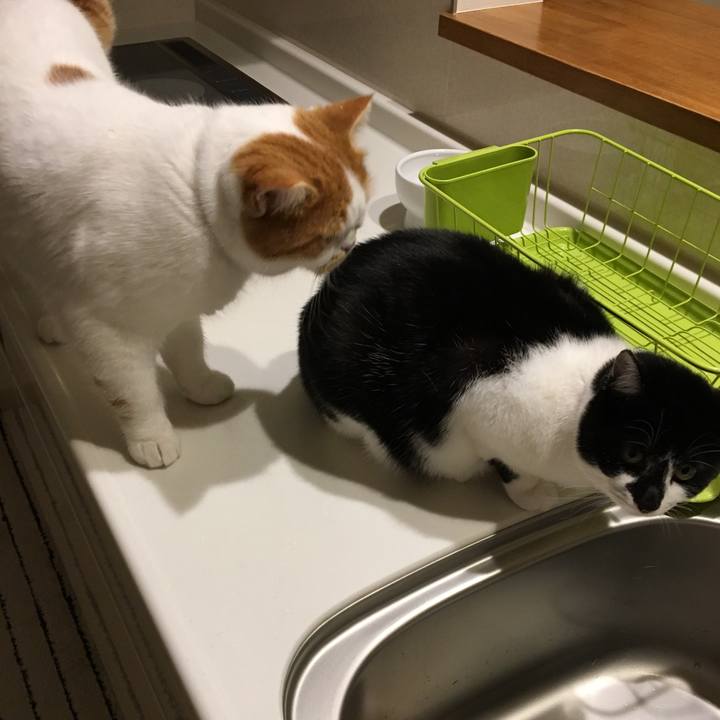 もるこのにおいをすんすん。 #シンク隊 #ちぇくはら #茶白 #白黒