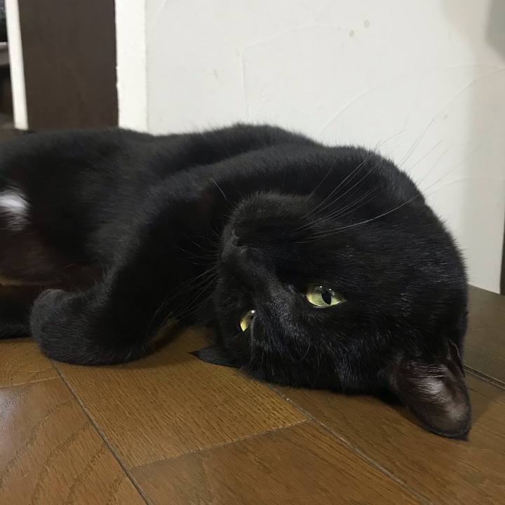 カメラ目線だけど、ねじれてる #黒猫 #ネコアザラシ隊