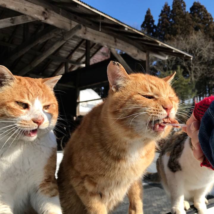 モグッ🎶 #牛小屋猫 #猫の日 #ボス猫 #缶詰めモグモグ