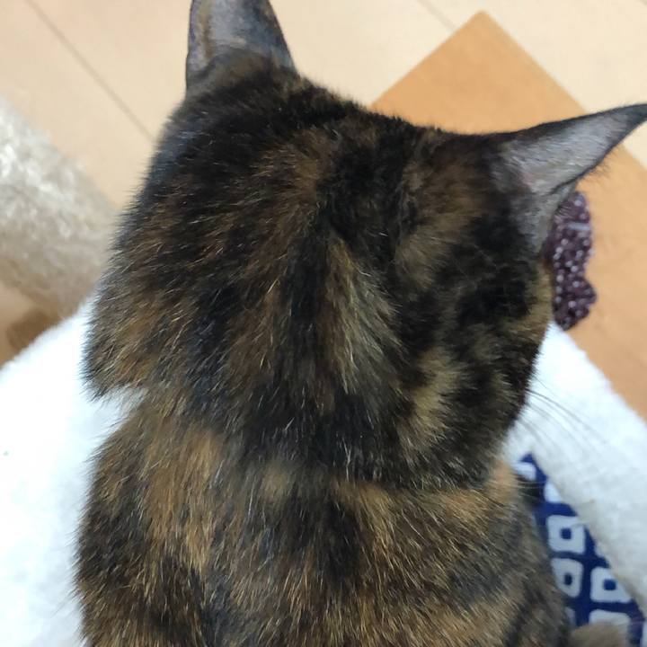 サビ猫仲間の後頭部は黒メインでした。蓮は?と思って撮ってみた。茶が多い。