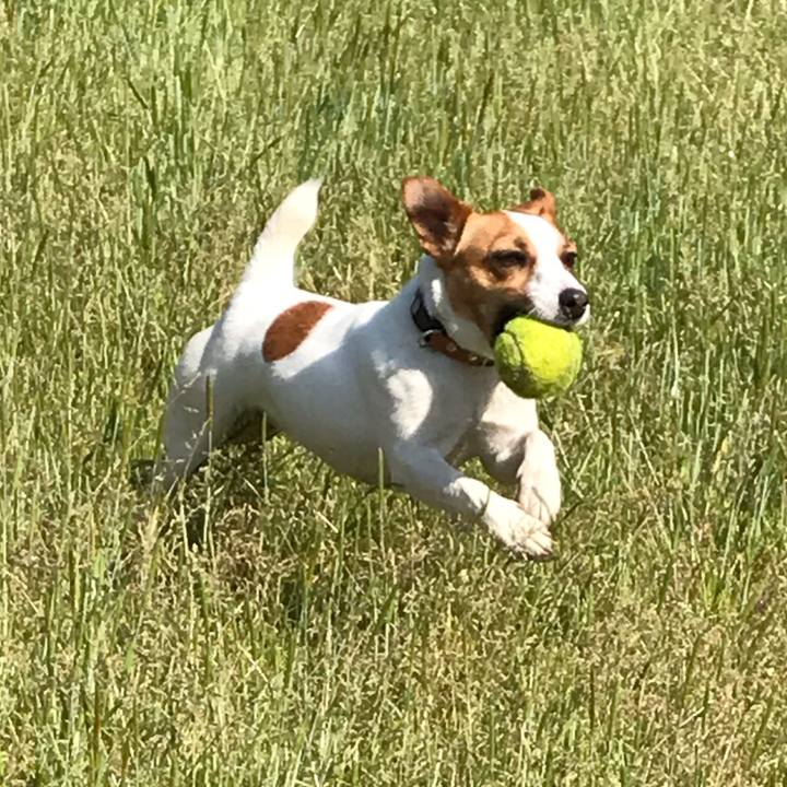草原を駆けるさくら🐶 「持ってきたよー💕」