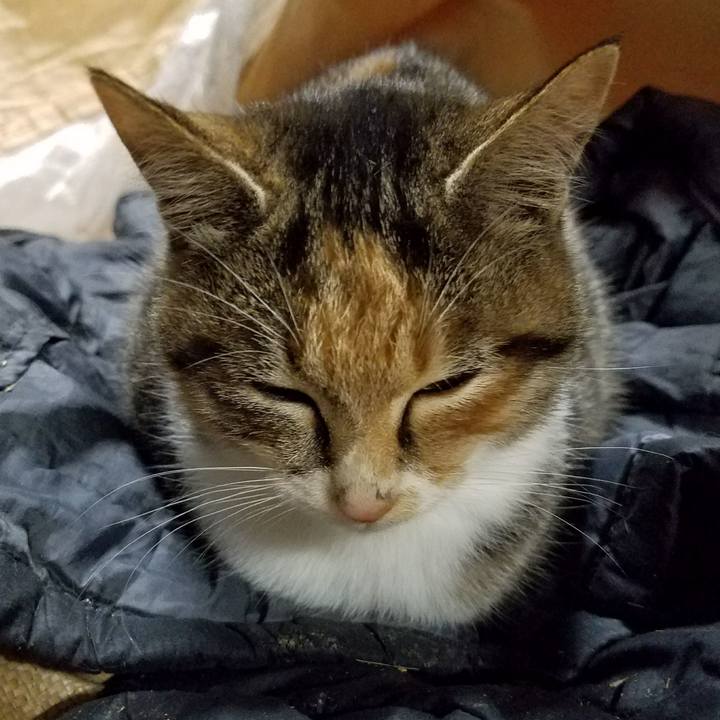 「おはようございます💤」5時。 子供のライトダウンおさがり😄