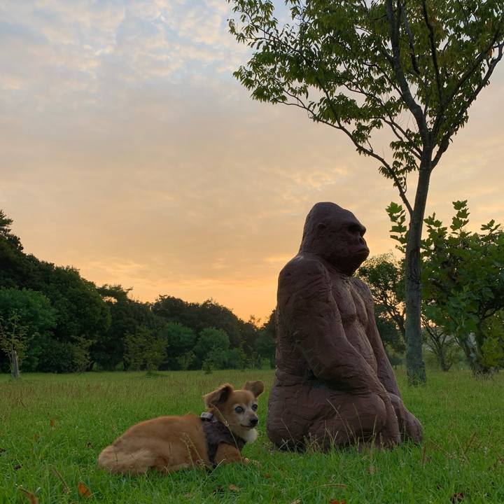 本日もご安全に〜🦍🐶 #チワックス#ミックス犬#あさんぽ#おはよう#親分と一緒