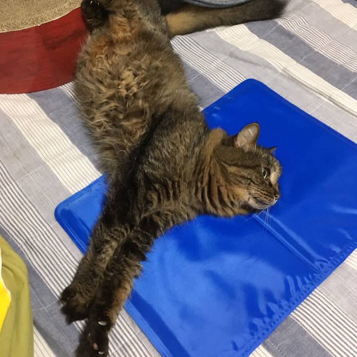 寝るのかと思ったら出て来て伸び〜〜😸 アゴが蛇腹😂