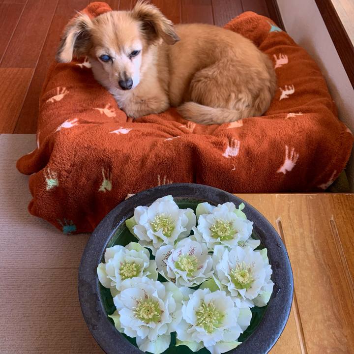 今年もたくさん咲くので、おうち花見🤍 #チワックス#ミックス犬#クリスマスローズ