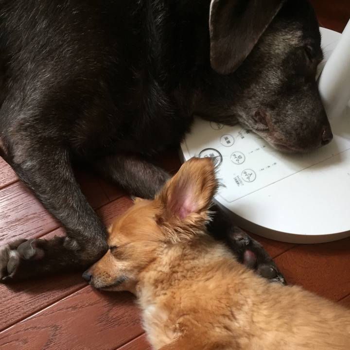 #ラブラドール#チワックス#ジャマかわ 扇風機 つきました。ありがと。