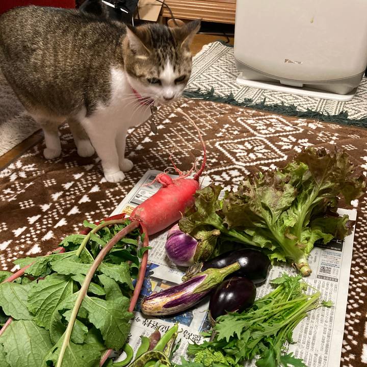 冬っぽい野菜が採れはじめましたよ。 #キジ白 #キジトラ友の会