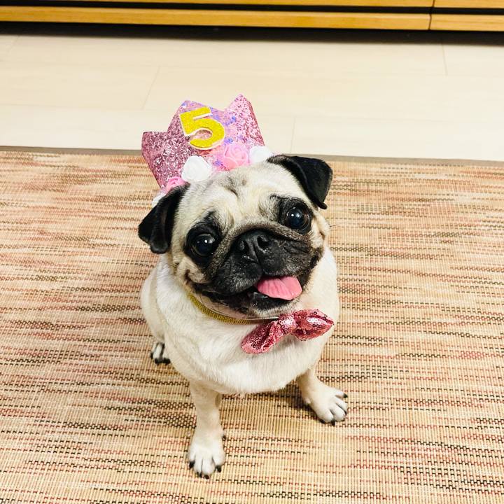 5歳になりました。 生まれてきてくれて、健康でいてくれて感謝! #パグ