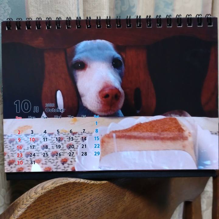 チロっ!とな。笑 🍰を狙うラッテ🐶💕 好きな1枚を10月📅に選んだんだよね😊