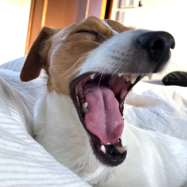 今朝の君😙 #話せばわかるイヌ #あくびや伸びをする #ジャックラッセルテリア