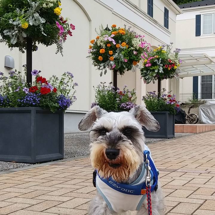 今日も元気に#生やし部 そしてお顔はニヤリ#ちょい悪 #シュナウザー #花活隊