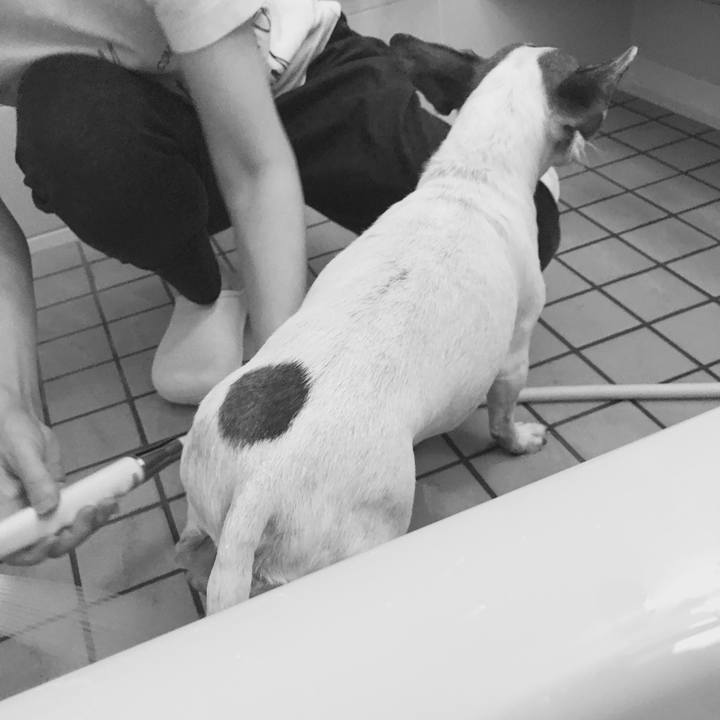 足を洗おうとしたら、おとうさんがお風呂に入っていた。棲み分けをする。