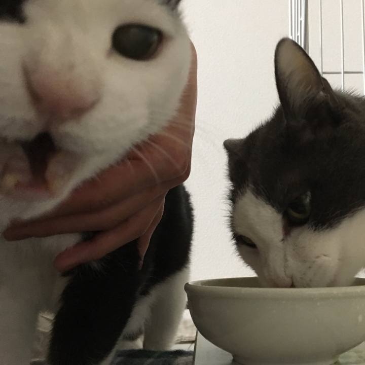 食べたいにゃ〜‼️(🍙) #ハチワレ #白黒 #灰白