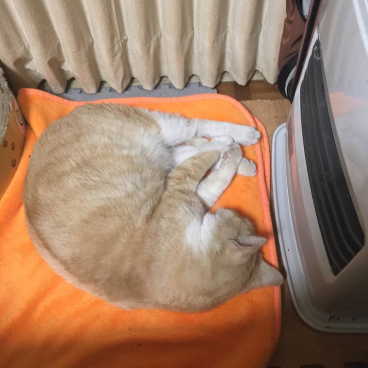 安定のオレンジ毛布とオレンジ猫 #ねこ句 #ストーブラブ