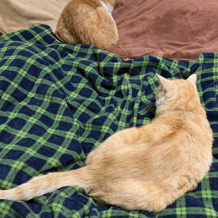 ぼくの方が広い毛布で寝てるのだ! #ねこ句 #たぶんドヤ顔